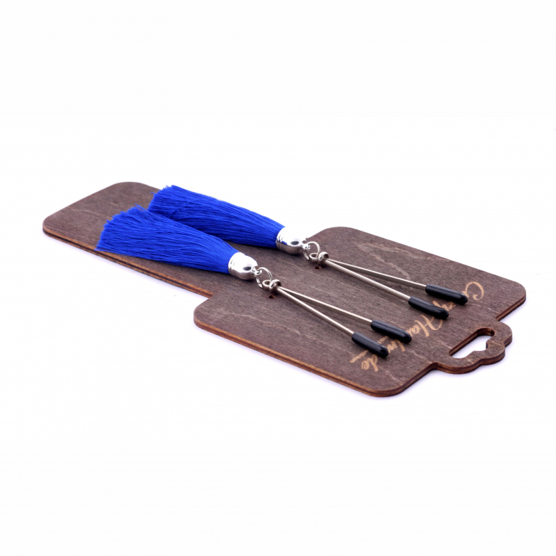 Зажимы-вилки на соски "Crazy Handmade" с синими кисточками