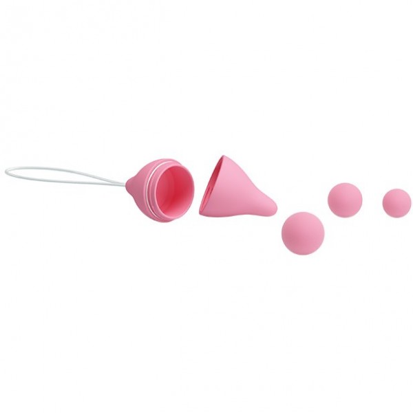 Потрясающий набор вагинальных шариков, выполненный в виде контейнера и 3 шаров различного веса и диаметра, что позволяет самостоятельно контролировать вес тренажера!
