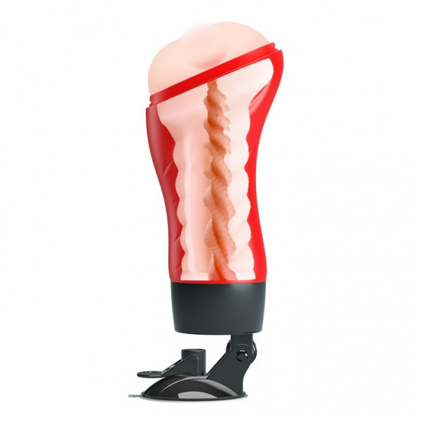 Мастур­ба­тор помещен в тубус, выпол­нен­ный из ABS пла­стика в крас­ном цвете. В осно­ва­нии тубуса име­ется мощ­ная при­соска, кото­рая поз­во­ляет крепить девайс к любой ров­ной поверх­но­сти! Но это еще не все! Спе­ци­аль­ное коле­сико поз­во­лит отрегу­ли­ро­вать угол наклона, что даст возмож­ность стиму­ли­ро­вать поло­вой член под абсо­лютно любым углом, ими­ти­руя раз­лич­ные позиции! При­соска съем­ная. Также, тубус закры­ва­ется крыш­кой кото­рая скроет "сокро­вище" от посто­рон­них любопыт­ных взглядов